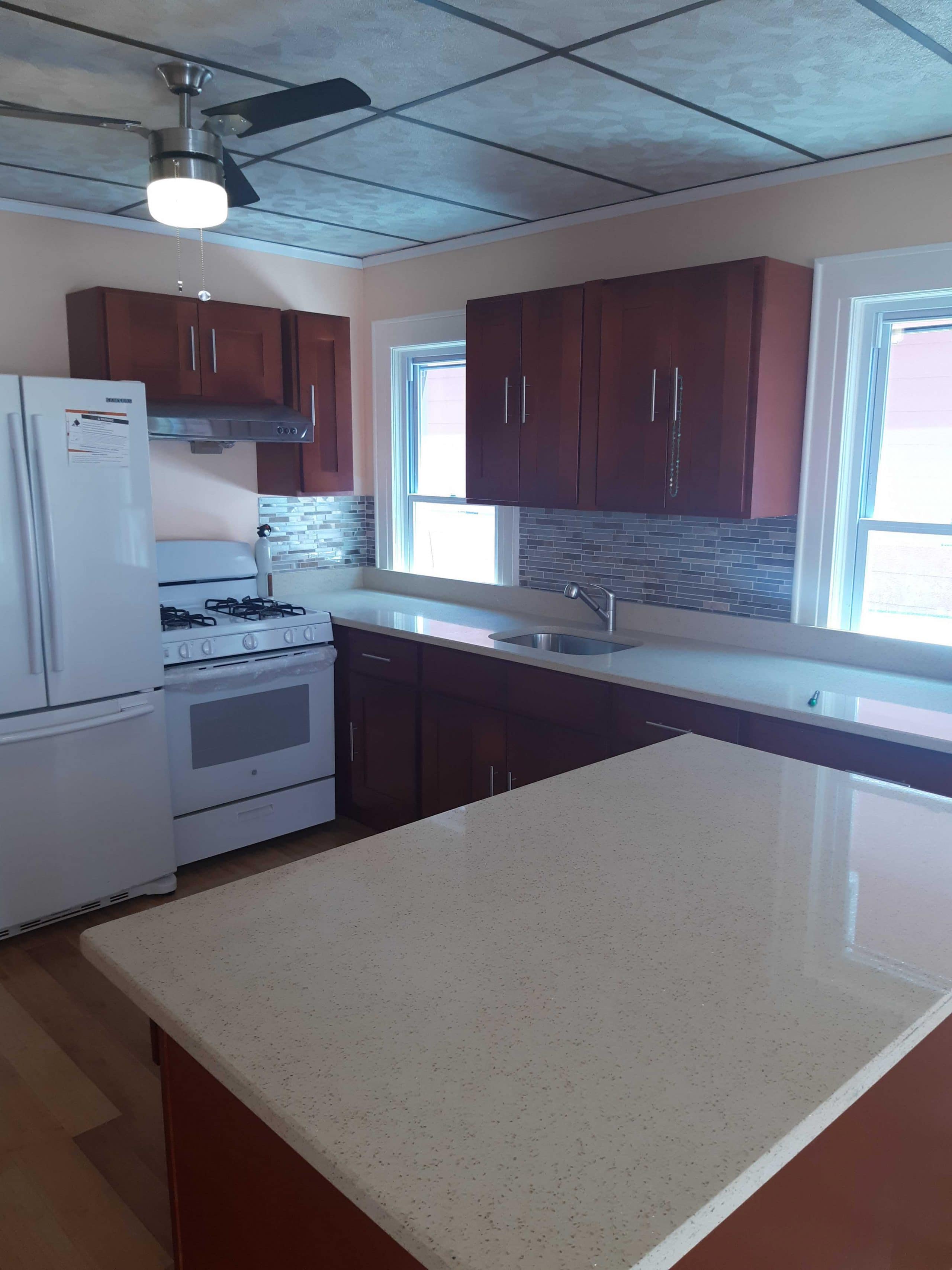Brand new garage, brand new private driveway, porch in the back and front, brand new windows, floors, doors, walls, island kitchen, etc.