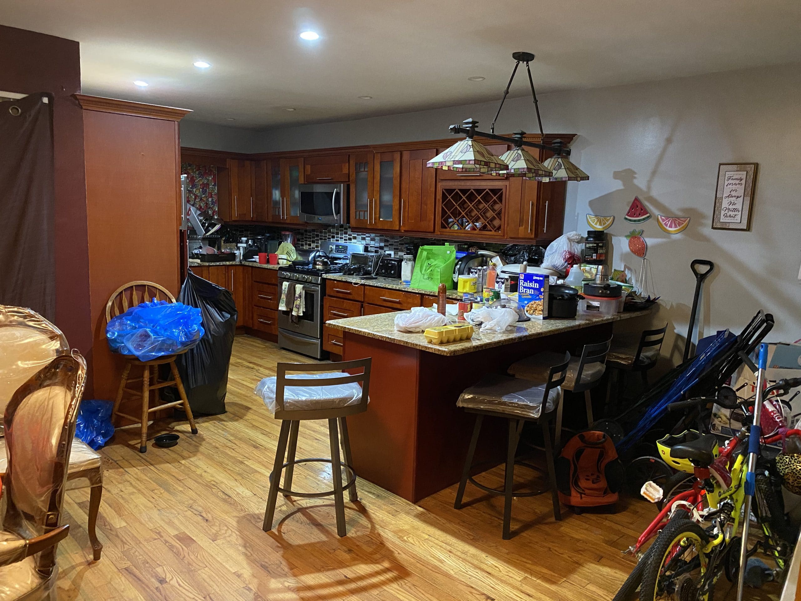 1st Floor – Open layout – Large living room, dining room, large updated kitchen (granite countertops & stainless steel appliances) and 3/4 bathroom (incl shower). Dining room has a door leading to the backyard.