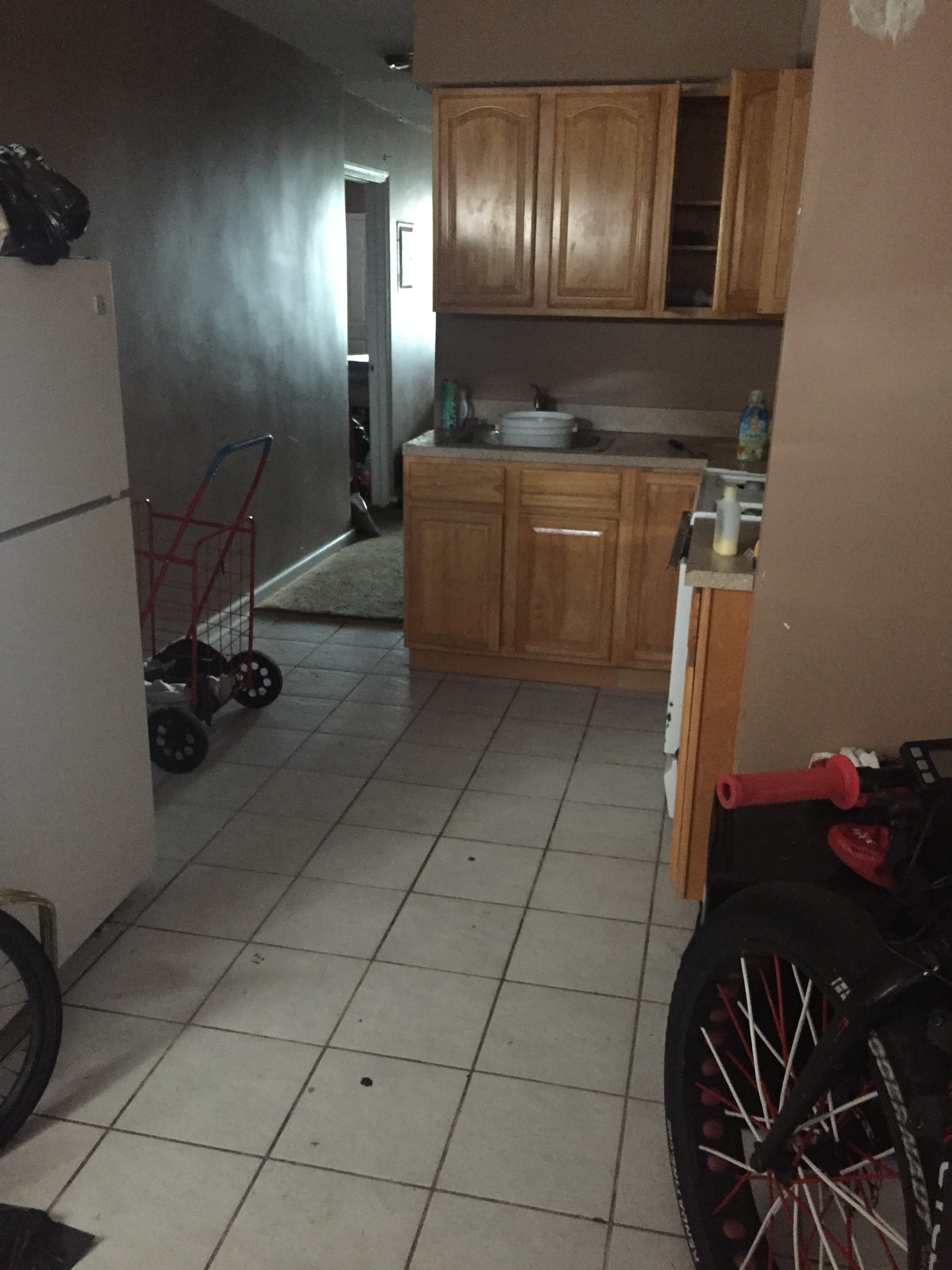 1 bedroom, 1 full bathroom, living room, kitchen, back door to back yard