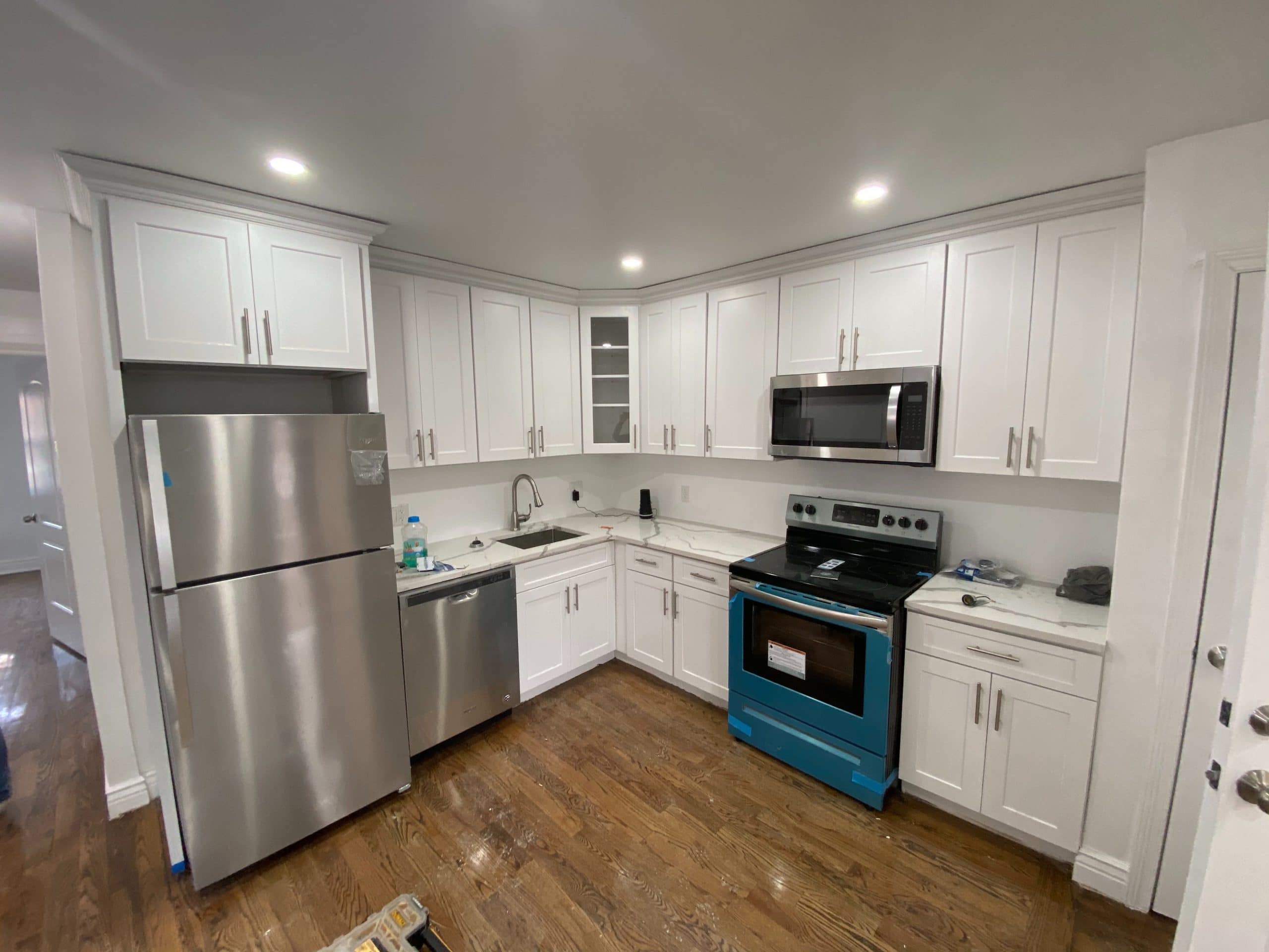 – Brand new kitchen w/ quartz countertops, & stainless steel appliances including fridge, stove, microwave, & dishwasher