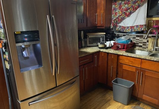 1st Floor – Open layout – Large living room, dining room, large updated kitchen (granite countertops & stainless steel appliances) and 3/4 bathroom (incl shower). Dining room has a door leading to the backyard.